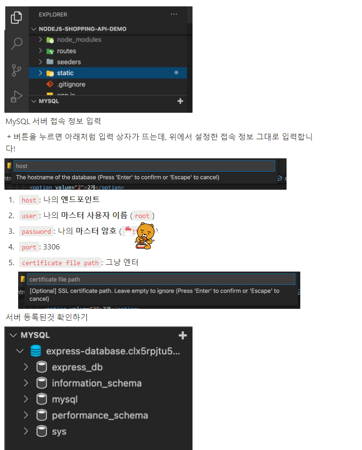 VS Code 좌측 사이드바 → 탐색기 → MYSQL 탭 우측 → ﹢버튼 클릭