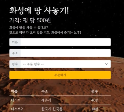 <h1>화성에 땅 사놓기!</h1>